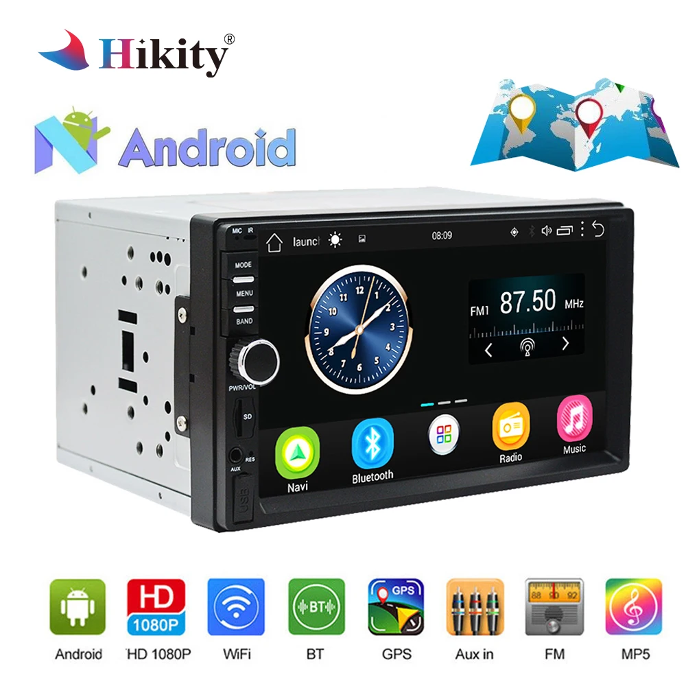 Descuento Hikity 7 ''Android coche Radio Estéreo navegación GPS 2 Din Touch USB coche reproductor Multimedia reproductor de Audio trasero cámara de vista Superior